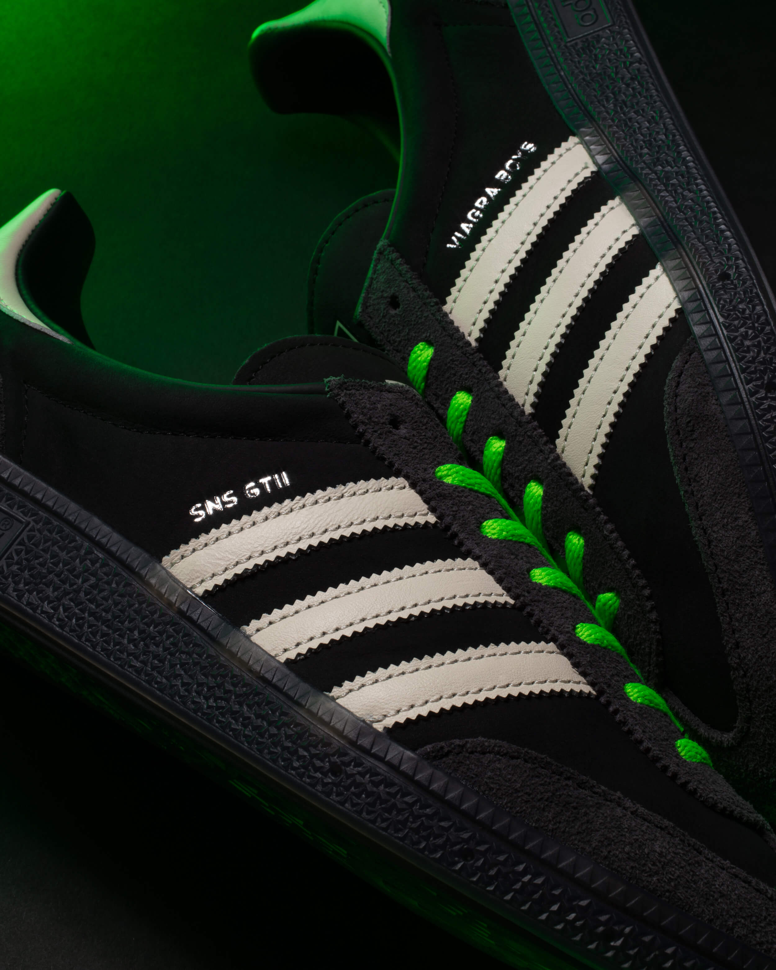 The adidas Originals SNS GT II x Viagra Boys releases November 22 online, with a Stockholm pre-release for the home market at SNS Stockholm on November 21.