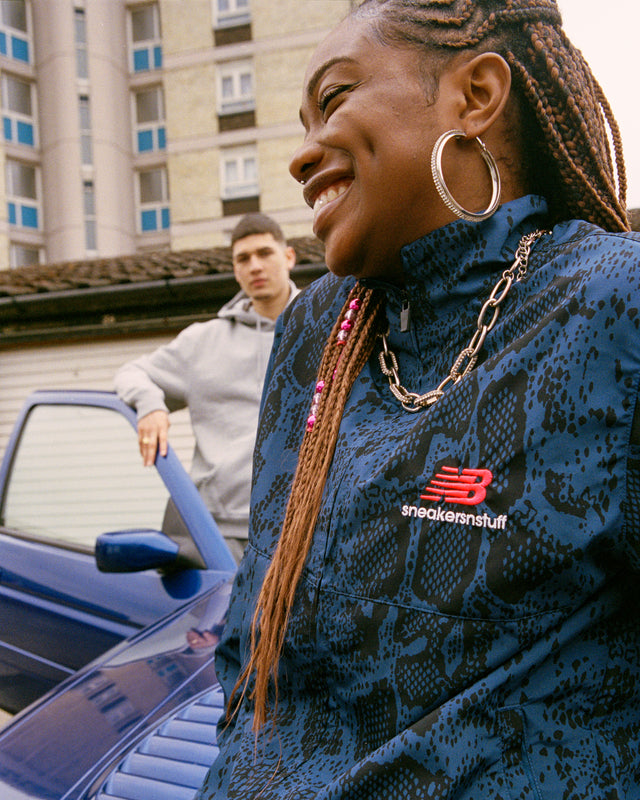 Inspired by the stunning blue-grey skin colors of the Blue Racer Snake, the lifestyle sneaker from New Balance is informed by heritage ‘70s running shoes and features a lightweight, breathable CORDURA® mesh upper with hairy suede overlays. Highlighted by faux Blue Racer snakeskin accents on the “N” emblem and heel tab, the SNS logo shares placement with the New Balance logo on each tongue. To go along with the shoes, both brands team up for a vast capsule clothing collection, including two graphic tees and a tracksuit equipped with signature snake print, while the cotton hoodie and cotton sweatpants, as well as the Rain Half Zip jacket, feature co-branded SNS x New Balance artworks.