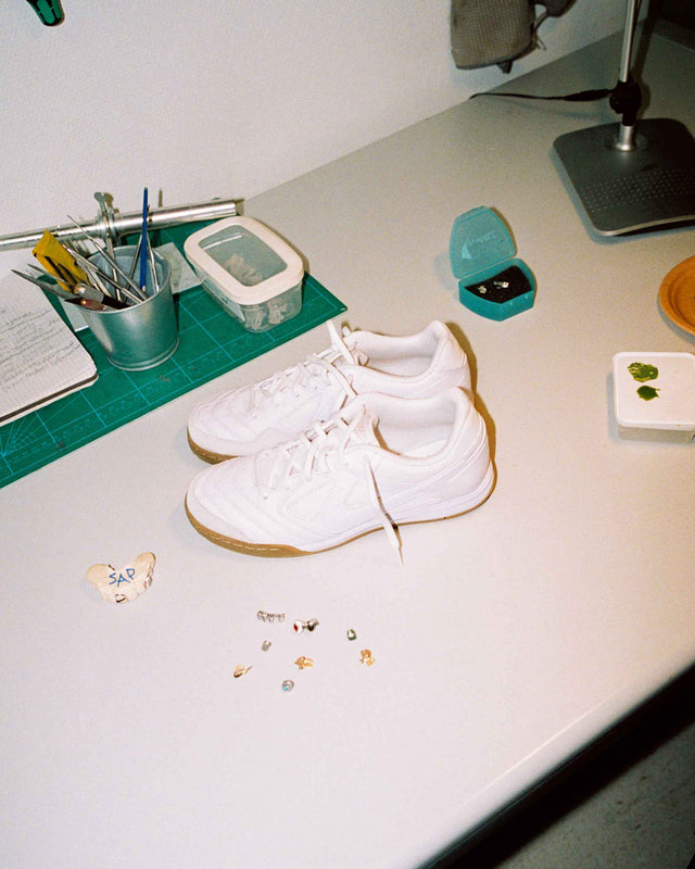 To highlight the Nike Gato, we linked up with two Stockholm-based creatives – designer and founder of Stockholm’s Wawa Print Shop, Axel Wahl, and Saptieu Jeng, co-founder of the Stockholm-based jewelry brand Group Eleven Studios, which specializes in making grills.
