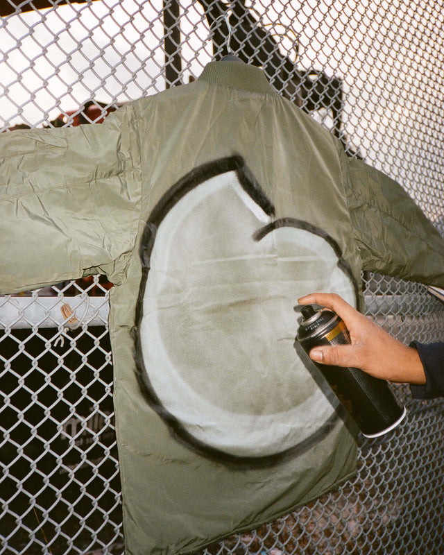 SNS and Giani now presents their debut liaison together. Spearheaded by custom upcycled reversible bomber jackets that come with Giani’s mascot sprayed on both solid and quilted sides, each jacket is unique on its own.