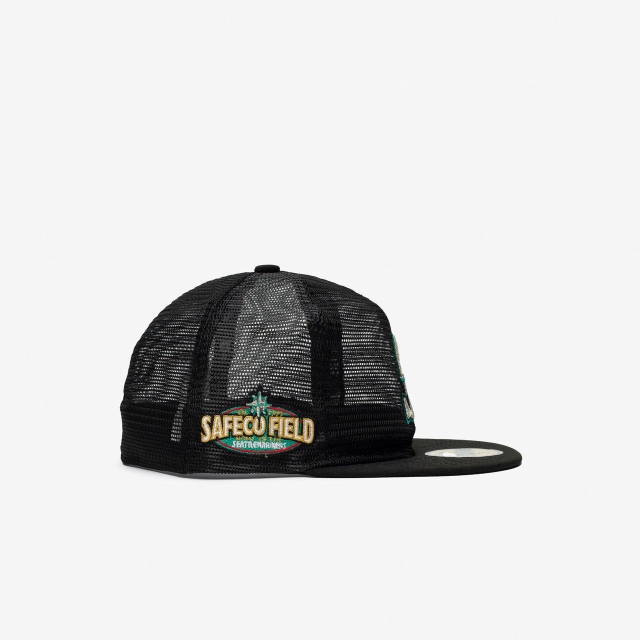 Support your team in style with this MLB 59FIFTY Mesh Patch by New Era. Constructed with 100% polyester, this fitted hat features an unstructured full mesh crown with a flat visor and an embroidered New Era logo on the left. The Seattle Mariners Safeco Field side patch on the right and the Seattle Mariners logo on the front complete the design.
