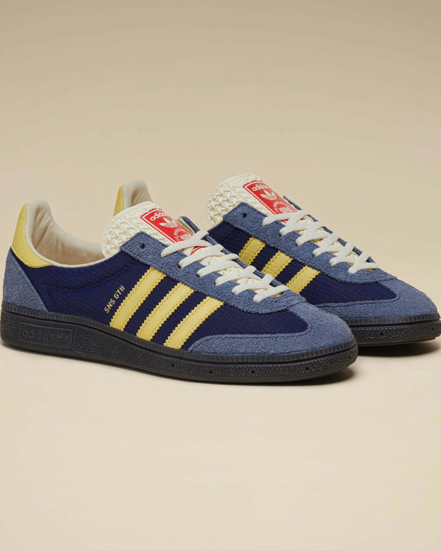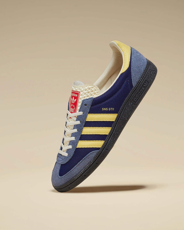 For this special collaboration, we switched up the materials on the adidas Originals SNS GT II, bringing a more premium look and feel to the terrace-inspired silhouette. The base is made of a ballistic nylon ripstop fabric, complemented by plush suede overlays, eco-tex on the tongue, thin K-leather stripes, and premium leather lining, rounding off the design alongside signature SNS and adidas branding.