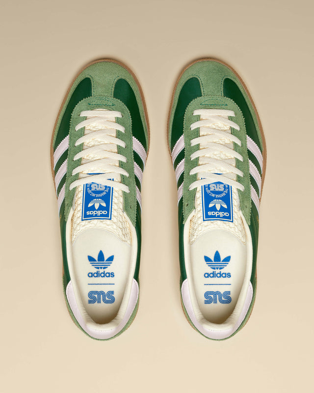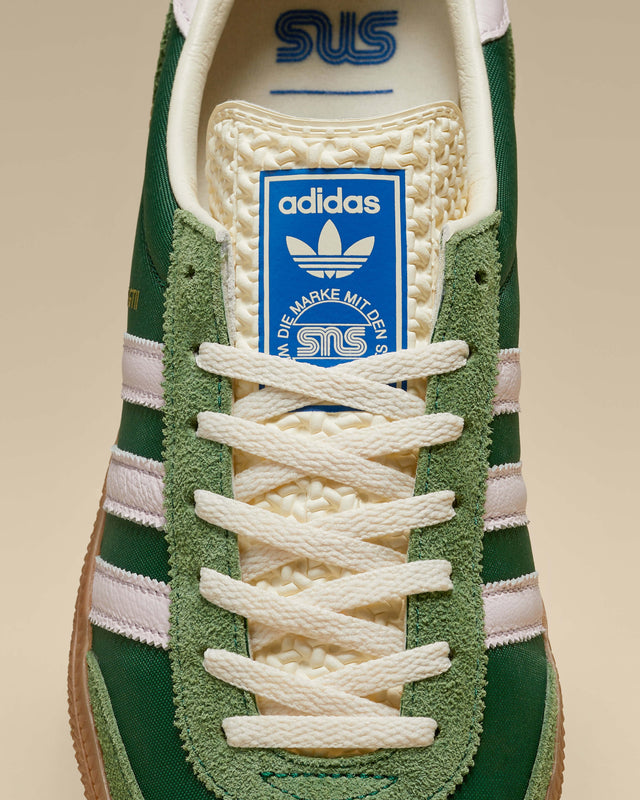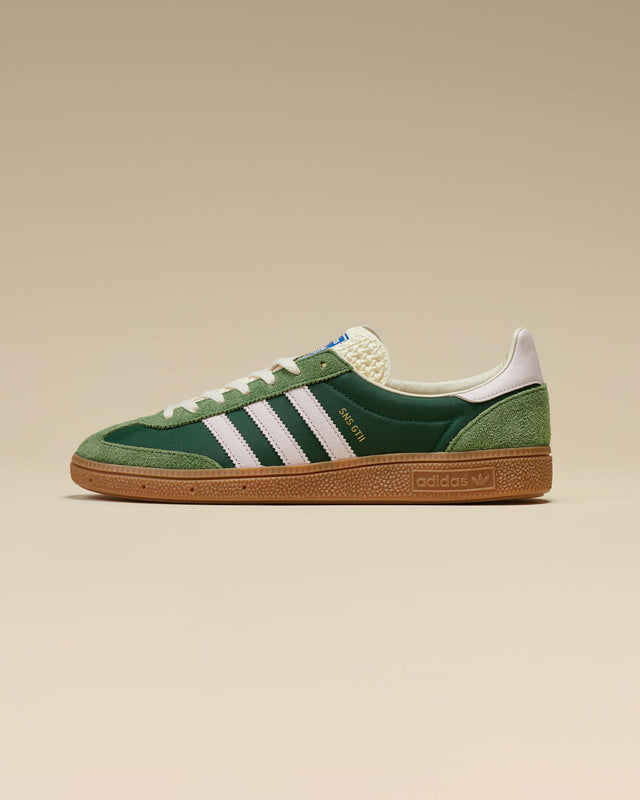 Appealing to both brands’ Terrace-obsessed audiences, the adidas Originals SNS GT II takes inspiration from numerous silhouettes in adidas’ extensive archive. While we looked at Stockholm for inspiration for the first SNS GT series, we now found inspiration for the silhouette in another Swedish city – Malmö. Equipped with tooling from the classic Handball Spezial, the SNS GT II combines a smooth nylon base with a plush suede toe bumper, complemented by premium leather lining and signature branding on the tongue label, sidewall, heel counter and insole.