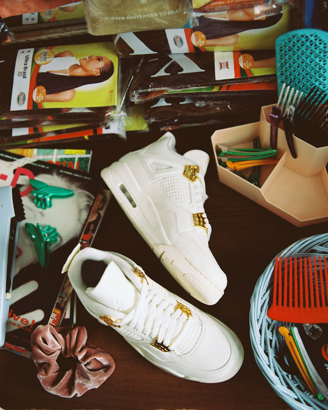 To highlight the Wmns Air Jordan 4 Retro “White Gold,” we caught up with Stockholm-born hairstylist Sainabou Chune. Known for styling the hair of some of the biggest names in Sweden, as well as being the first black hairstylist to be represented by a Swedish talent agency, Sainabou has tirelessly worked on perfecting her very own unique style throughout her illustrious career, which has led to her being regarded as one of Sweden's foremost experts on textured hair, as well as earning her prestigious awards such as International Hairstylist of the Year at the Black Beauty Awards back in 2015.