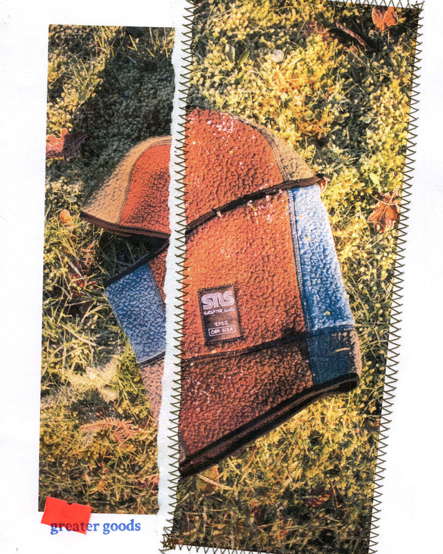 Greater Goods breathes new life into the fabric by offering their take on seasonal essentials, not shying away from a functional design. A first for SNS, the Balaclava, made for cold winter days and featuring an adjustable strap at the back of the head, the one-size headgear comes with a co-branded patch. Next up, and another first, is the Bottle Bag. Equipped with an adjustable shoulder or cross-body strap, an exterior mesh pocket, and drawstring closure, the Bottle Bag fits the last collab item, the SNS x Greater Goods stainless steel V6 Mizu Bottle like a glove.