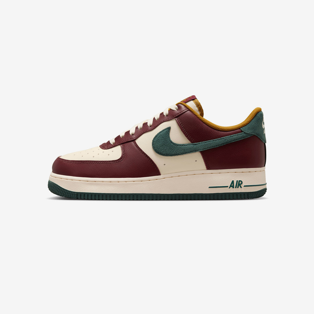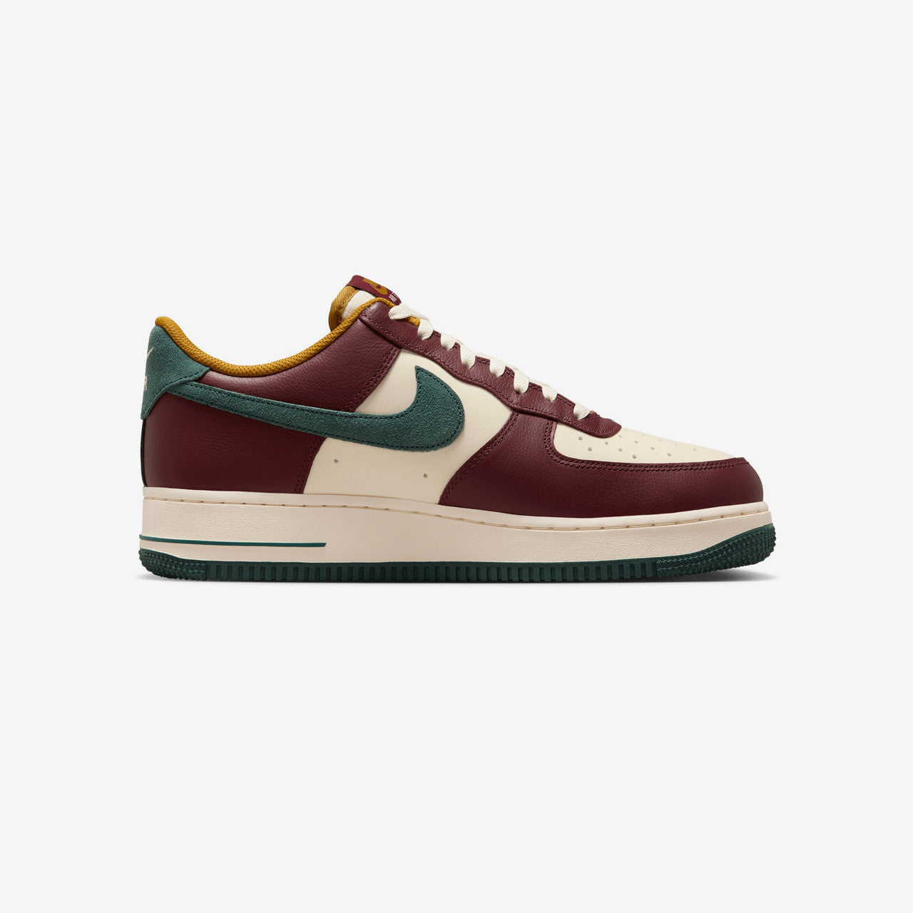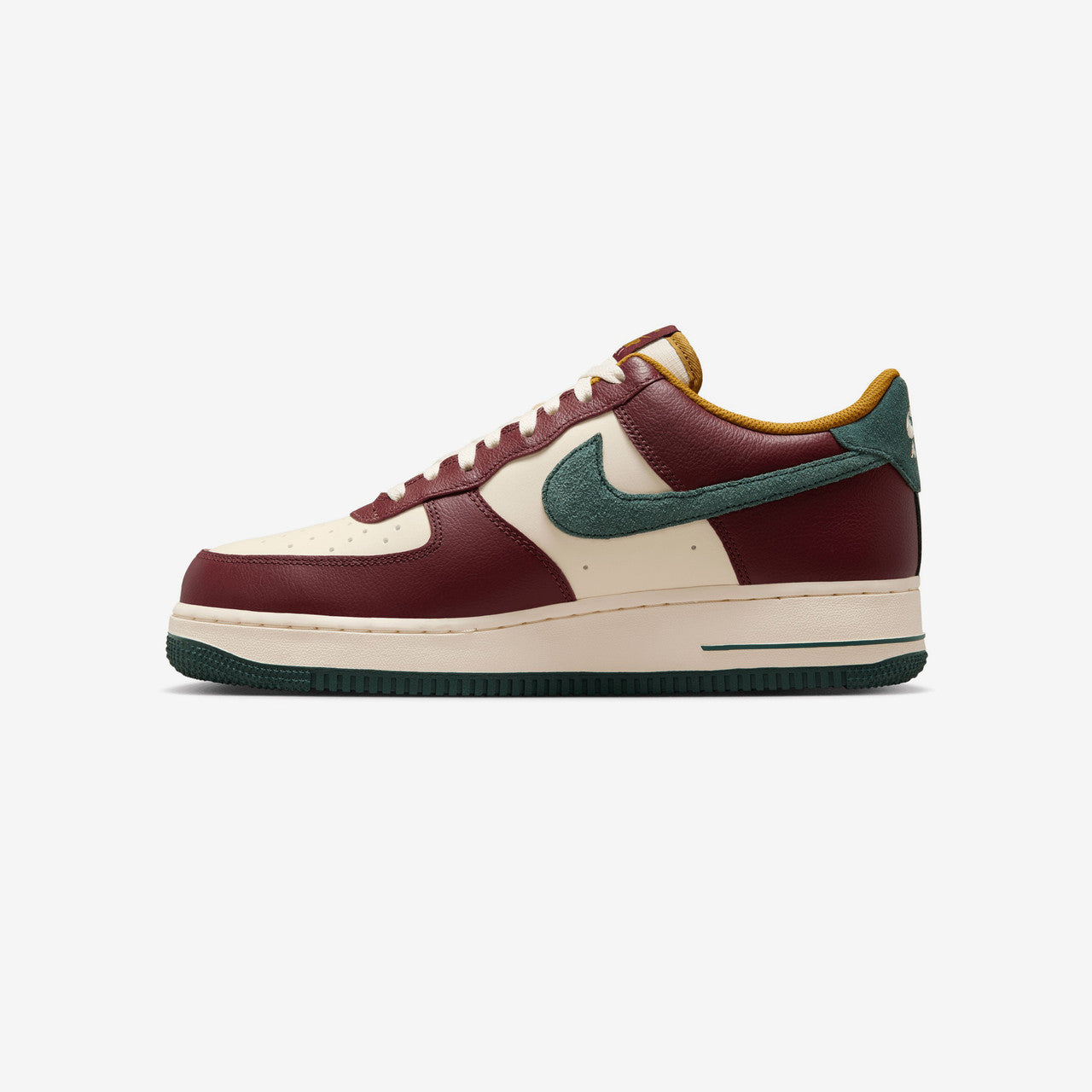 Rooted in history both on and off the court, the legendary Nike Air Force 1 '07 LV8 returns in a fresh fall-inspired "Dark Team Red/Vintage Green" colorway, ready to refresh your seasonal rotation. Staying true to the OG's iconic design, this iteration of the Nike AF1 combines a rich leather upper with plush suede accents on the Swoosh logos and heel counter, balancing muted cream, dark red, vintage green, and bronzine tones from head to toe. Final details include signature Nike Air logos on the tongue label, midsole, heel counter, and insole, alongside a durable rubber outsole.