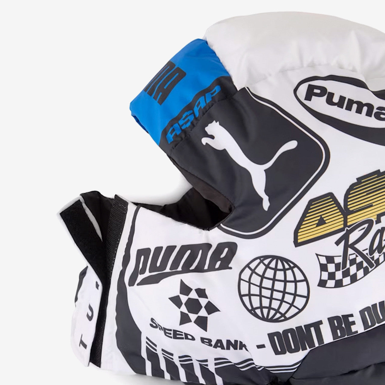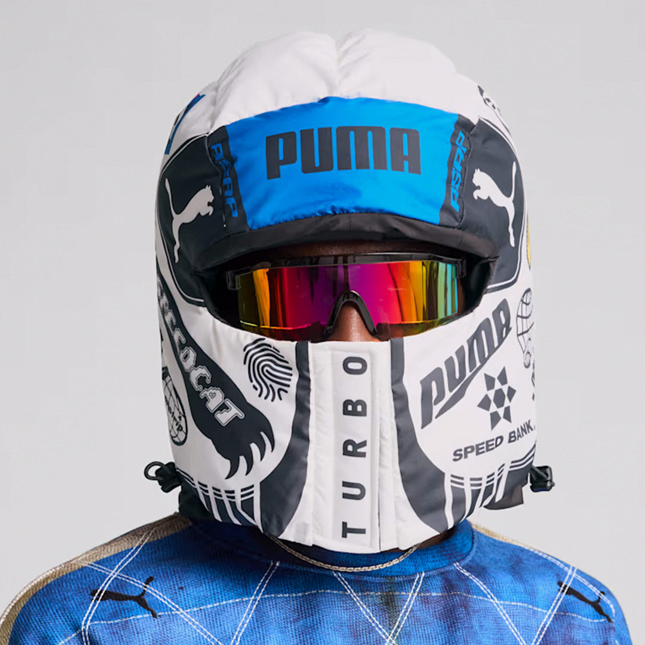 PUMA and A$AP Rocky are back with a new collection, taking inspiration from night racing and neon city lights to infuse motorsport silhouettes with hits of neon and A$AP Rocky’s distinct touch. Taking cues from a driver's racing helmet, this Padded Balaclava brings the velocity of the race track to life through high-speed racing graphics alongside classic A$AP Rocky and PUMA branding.