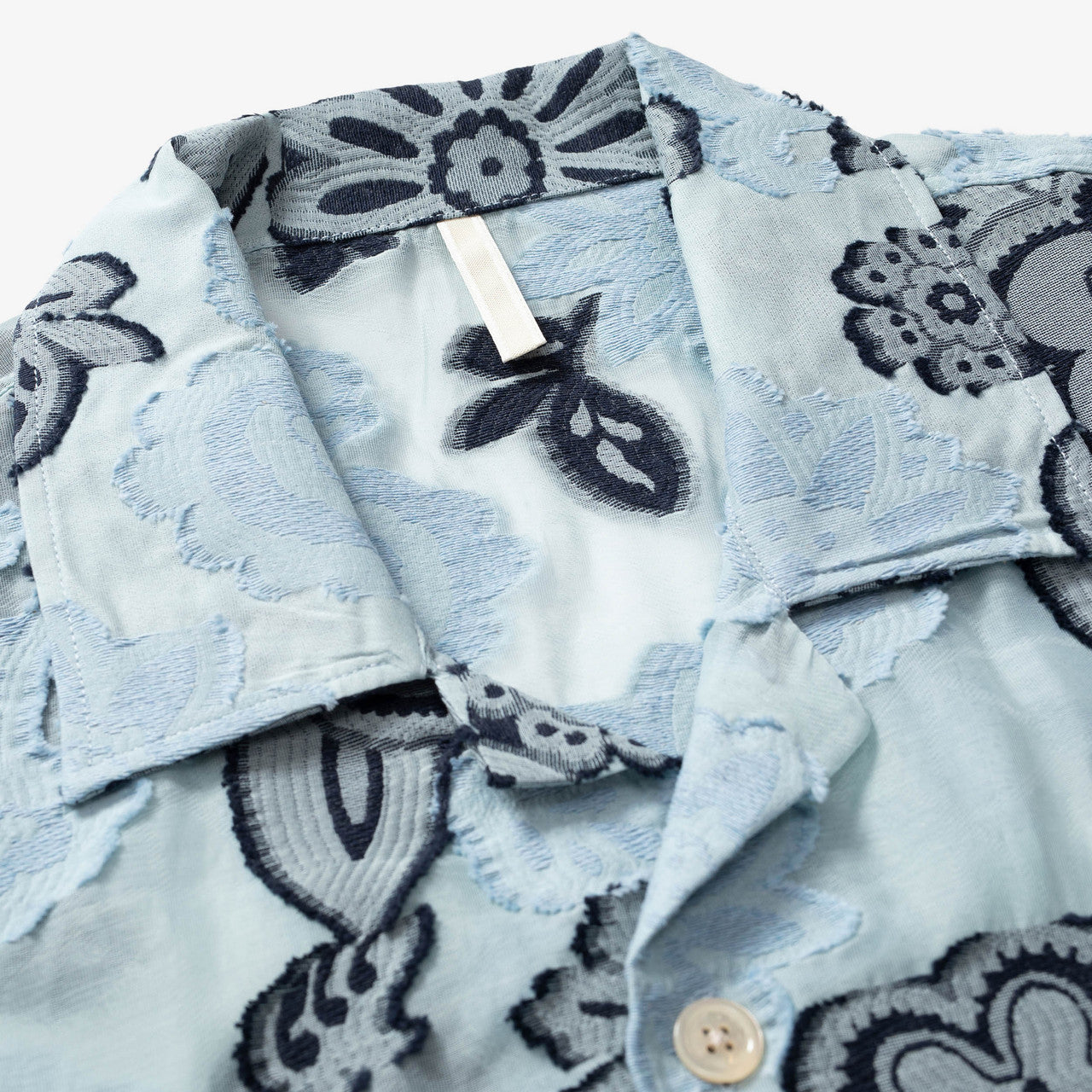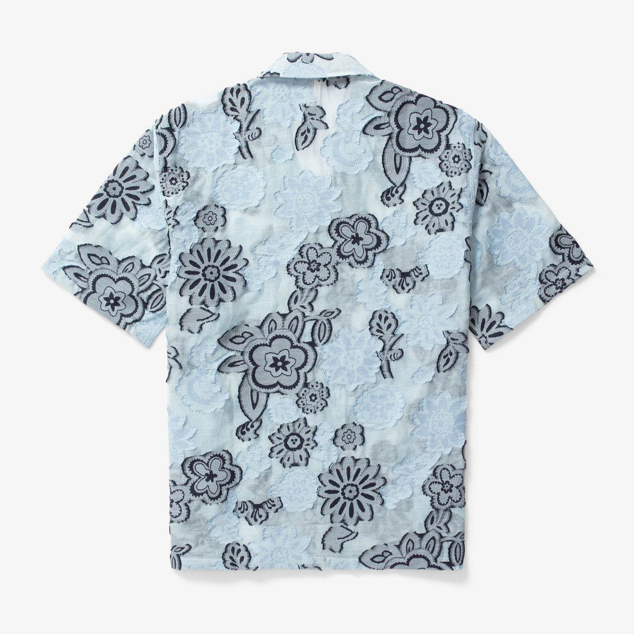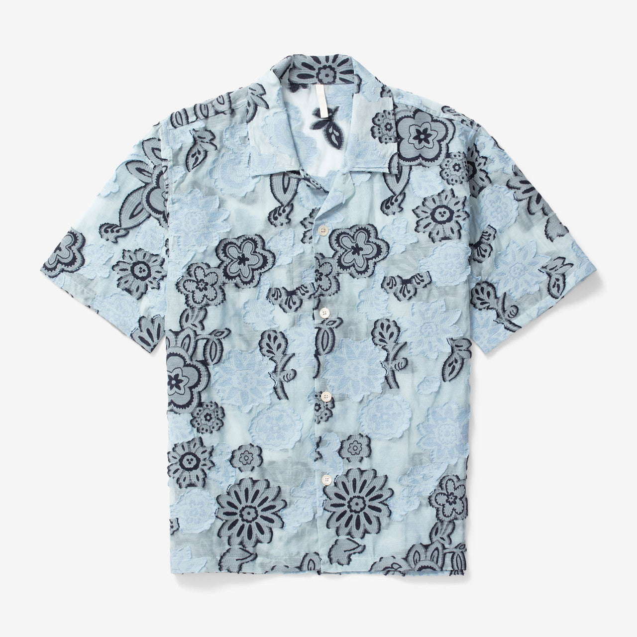 Arriving as part of their SS24 collection, Copenhagen-based brand Sunflower introduces this Cayo Shirt Short Sleeve. Constructed with an eye-catching translucent fabric, this shirt is detailed with an allover floral print, complemented by a camp collar and front button closure using real mother of pear buttons.