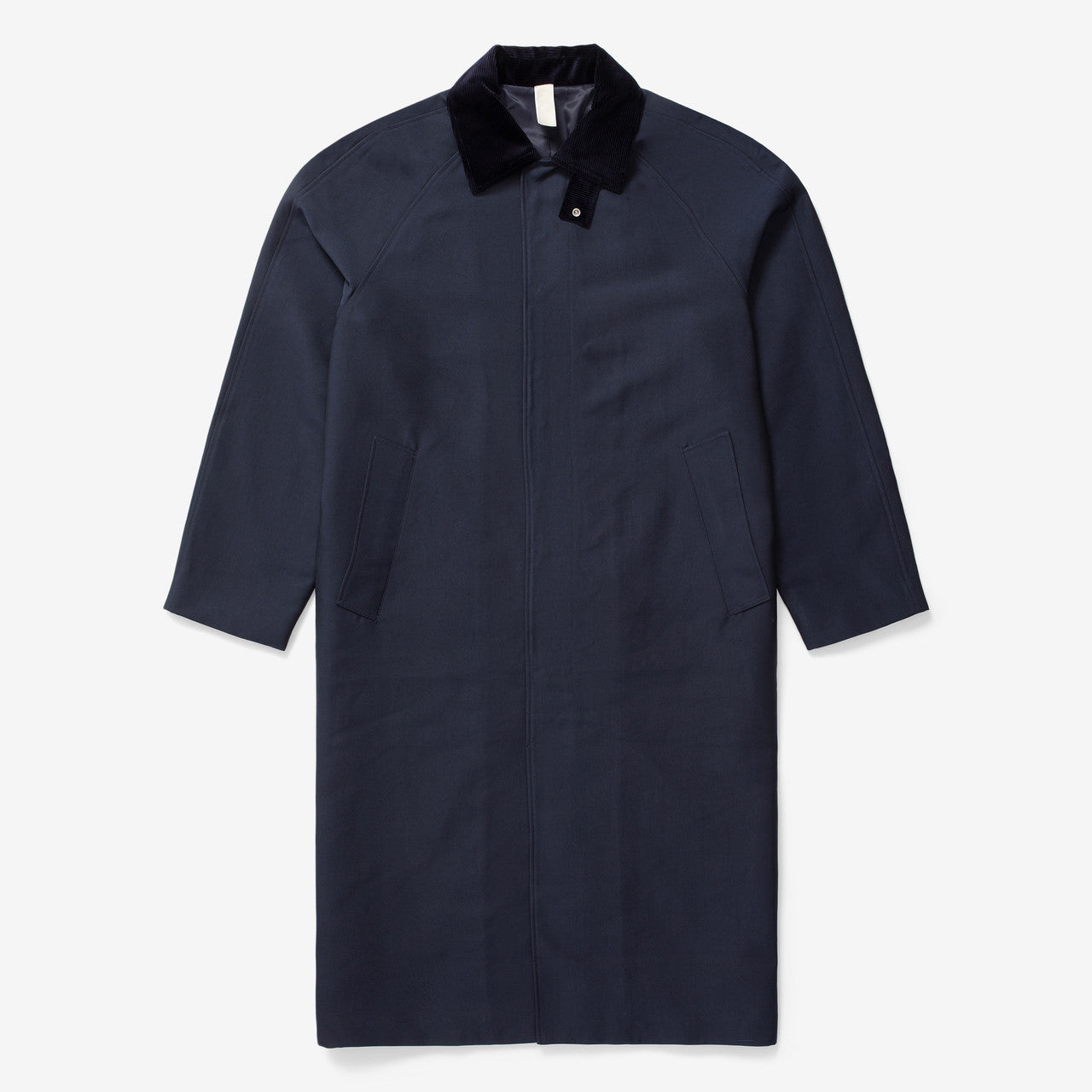 Introducing Sunflower's FW24 collection, which continues to reinvent '80s classics with the Copenhagen-based brand's unique touch. This Raglan Coat by Sunflower is made with a brushed cotton-nylon blend and features a metal push button closure, a slit at the back, and a storm flap at the collar.