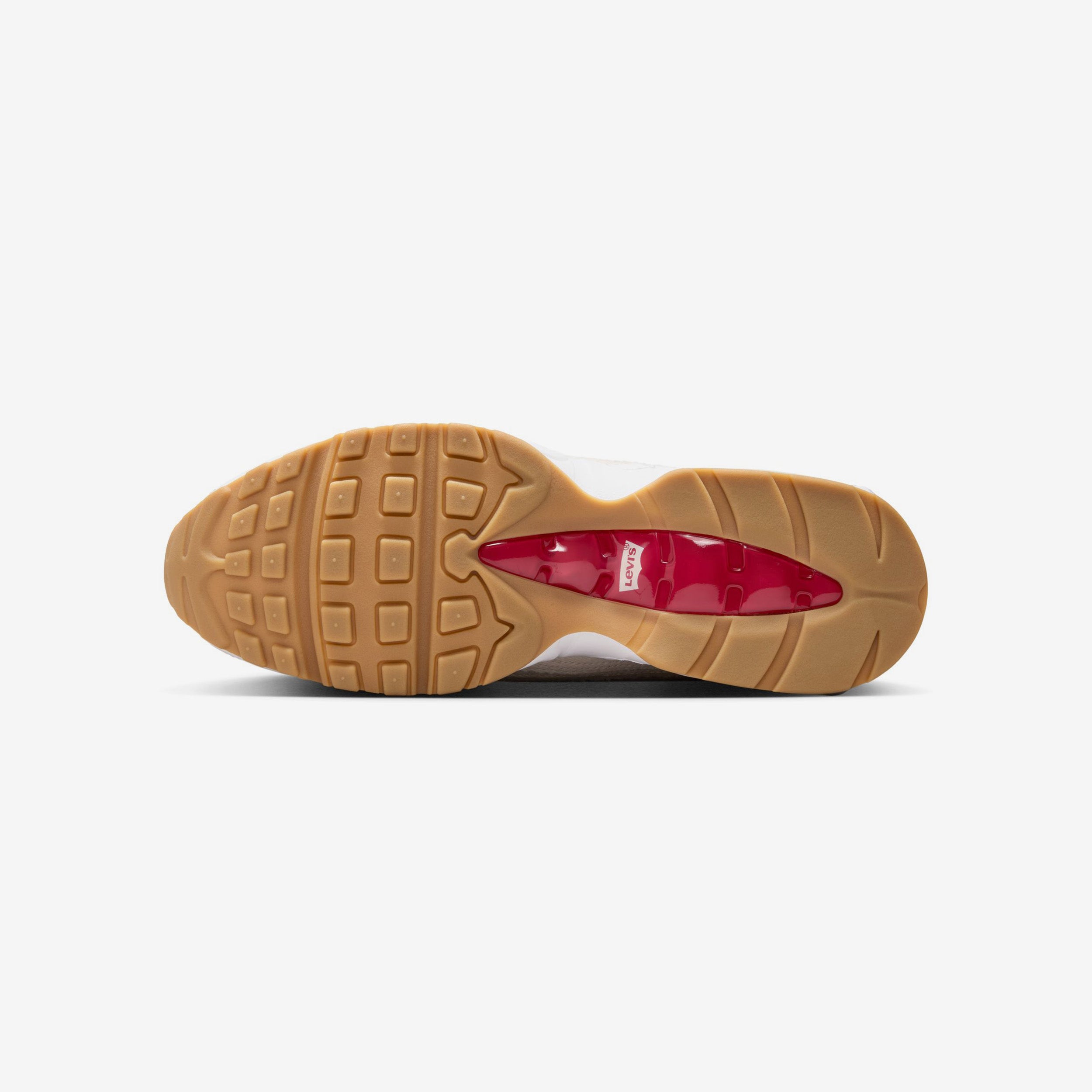 In celebration of the legendary silhouette's 30th anniversary, Nike and Levi's come together to breathe new life into the iconic Air Max 95, bringing a denim overhaul to an all-time classic. Featuring a two-tone woven upper with frayed raw edges coated in low-key hues of Ecru Denim and matt white, this pair features signature dollar bill artwork on the sockliner, complemented by a red plate on the sole and a traditional red woven Levi's® Red Tab on the lateral sidewall atop a vintage gum rubber sole.