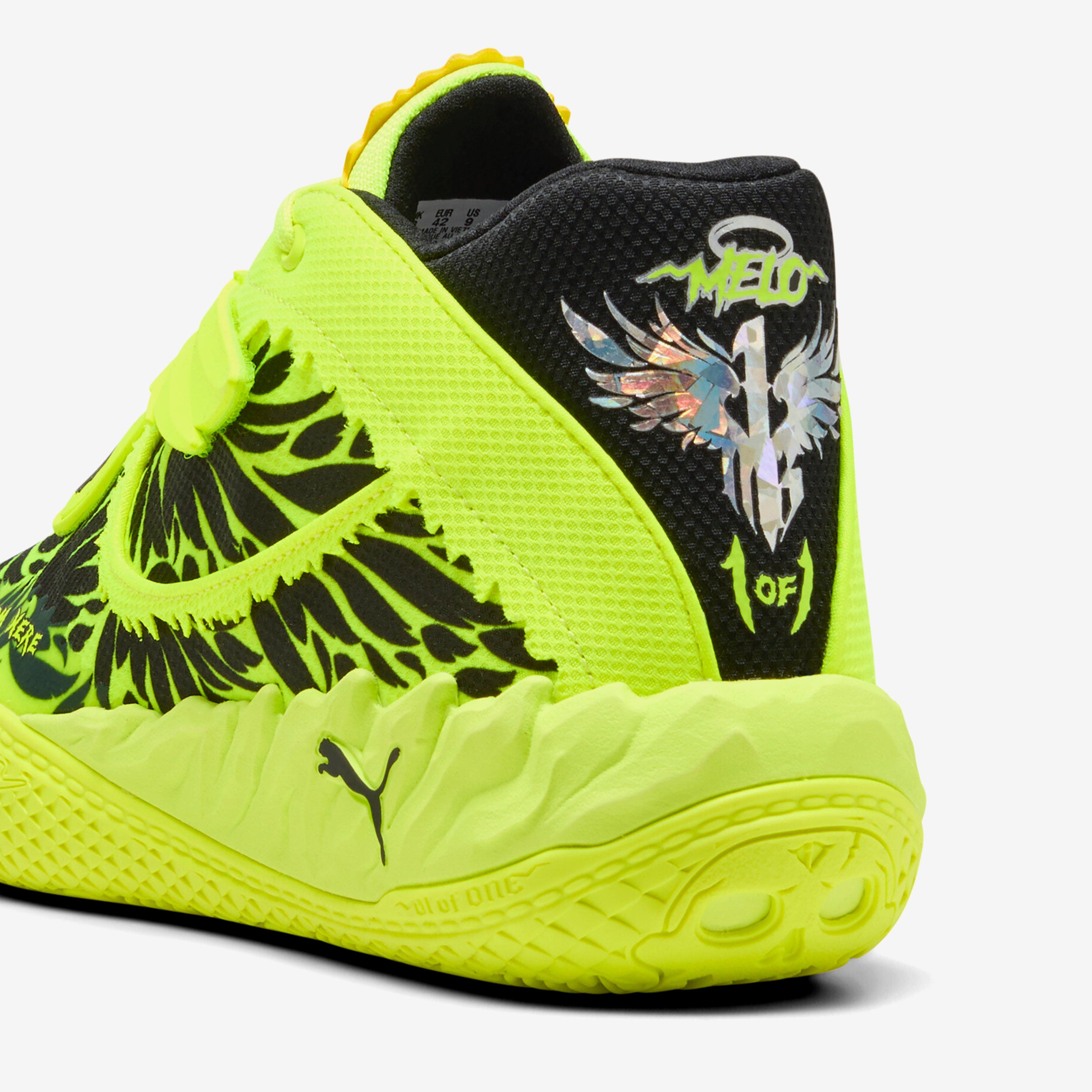 Melo doesn’t just play basketball – he hoops. He plays with pure instinct and flow. The PUMA MB.05 Rave, his latest signature shoe, channels Melo’s energy on the court. Arriving in a bold colorway, this edition stands out with layered mixed-material construction and vibrant accents inspired by Melo’s dynamic style. Finished with NITROFOAM™ cushioning for sustained on-court performance, the MB.05 Rave is built to support your game and let you move with confidence.