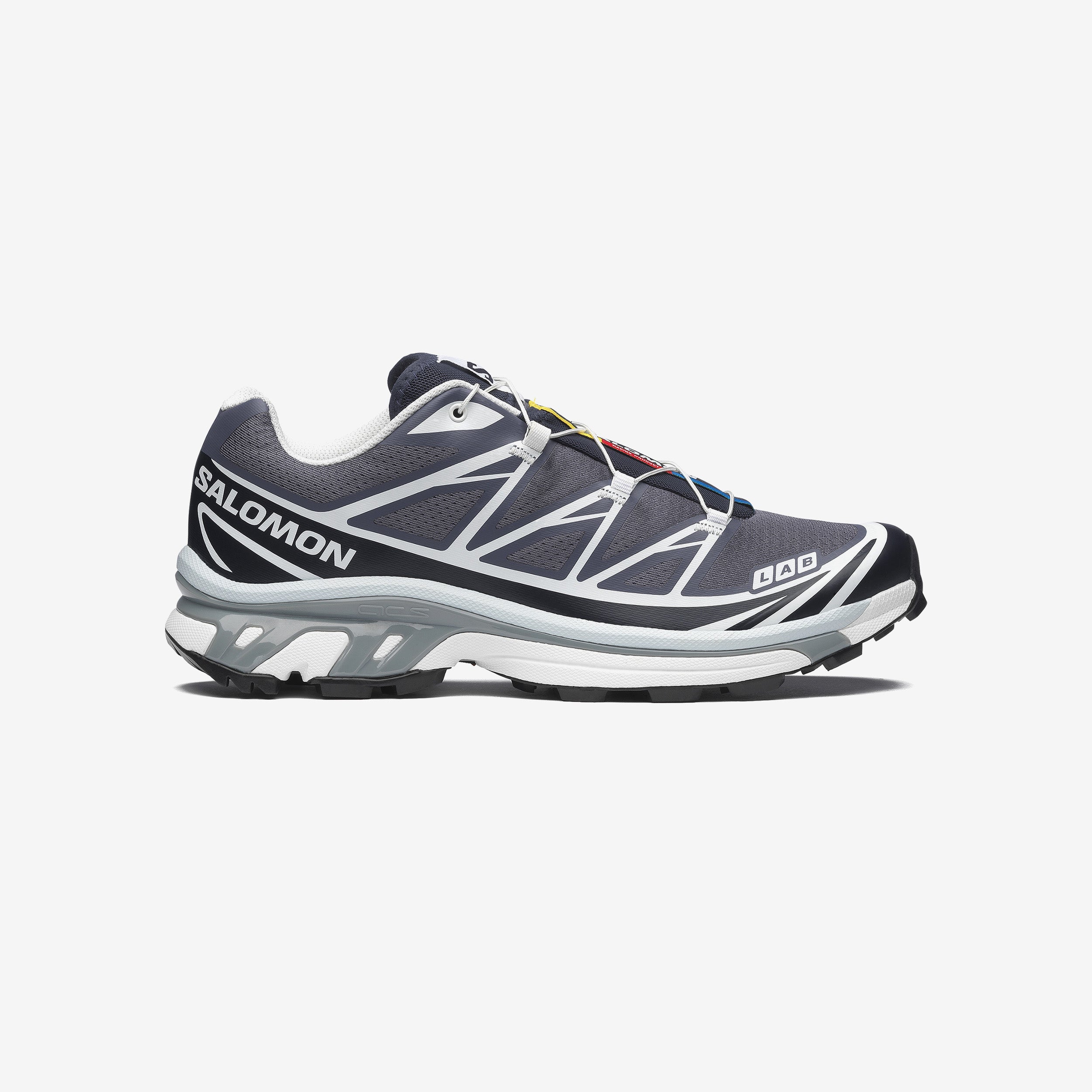 Equipped with a lightweight, streamlined mix of resistant TPU film and single-layer mesh, the SALOMON XT-6 offers a downhill chassis and lug geometry for more comfort and stability. Rounded off by a dual-density EVA cushioning with a protective toecap and a Quicklace® lacing system for one-pull tightening, allowing you to travel in style.
