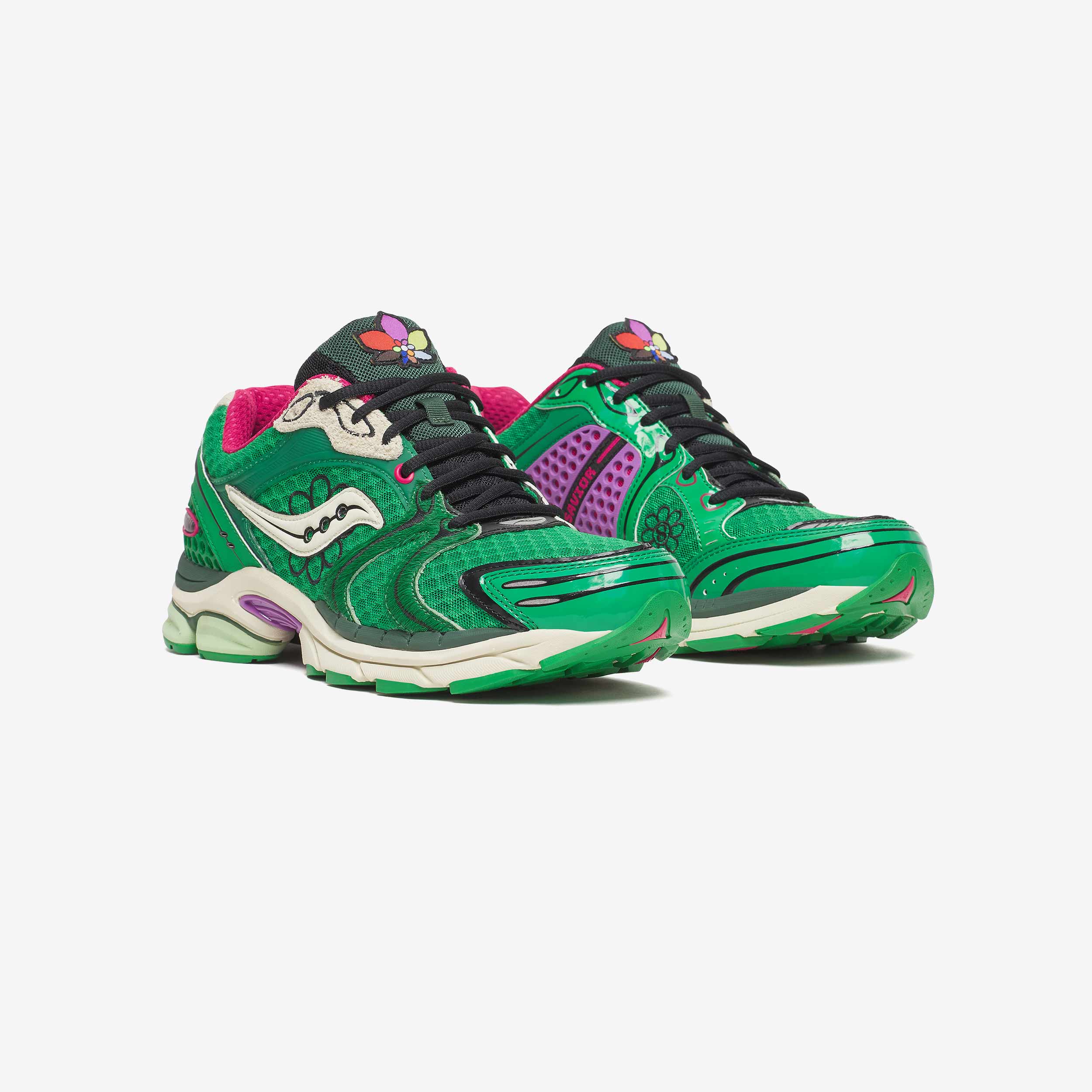 Saucony and Jae Tips team up once again to bring new life to the ProGrid Triumph 4, this time as part of the “Flowers Grow Uptown” collection — a series inspired by the blooms and color stories found across New York City. The “Sugar Maple” colorway pairs green and earthy tones with floral accents, reflecting the resilience and beauty of nature thriving in an urban landscape.